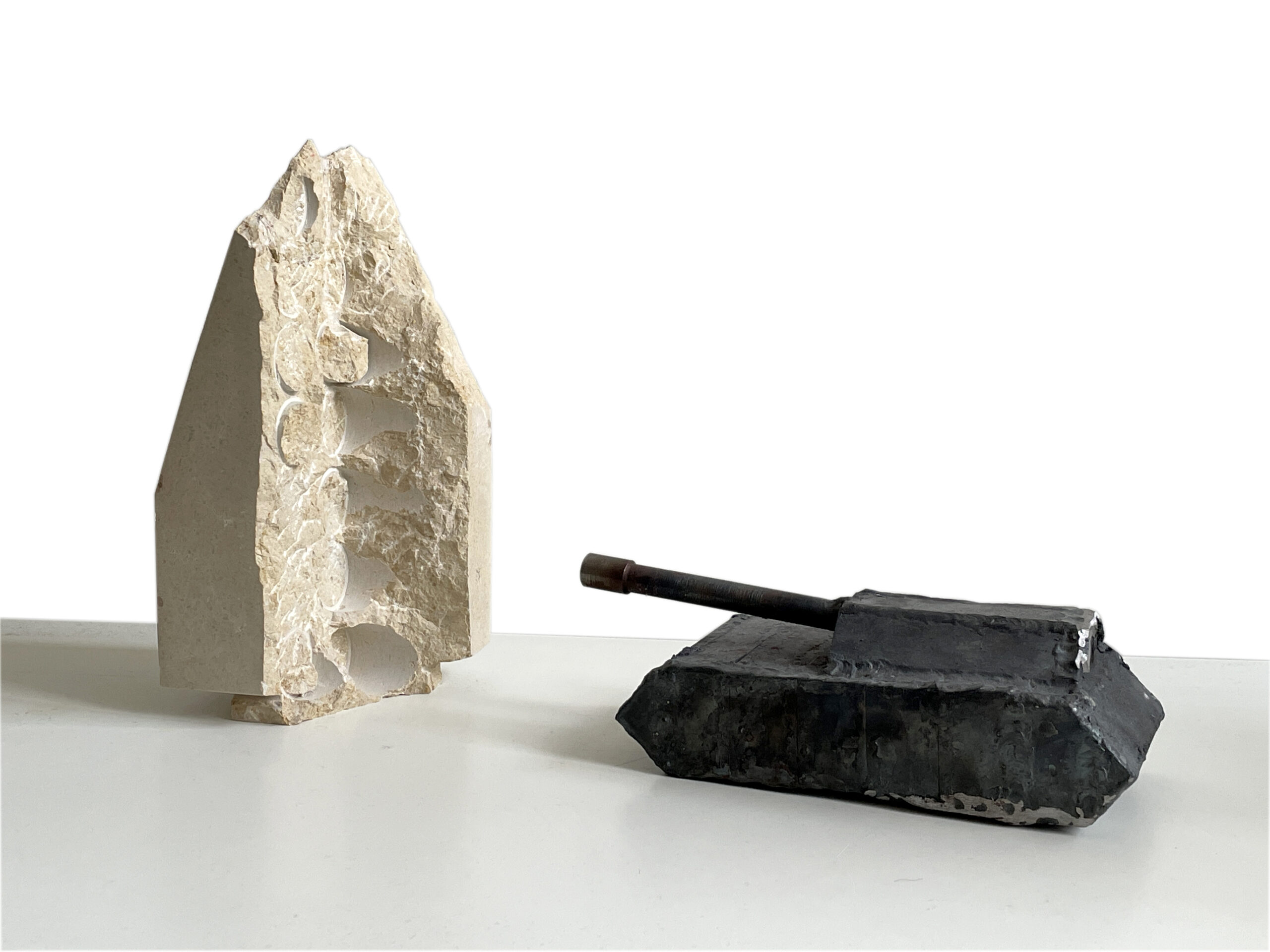 Liesberger Kalkstein, Stahl geschweisst, unbehandelt (von meinem Sohn A.), 2025